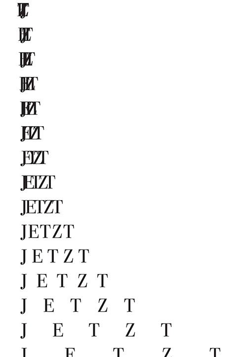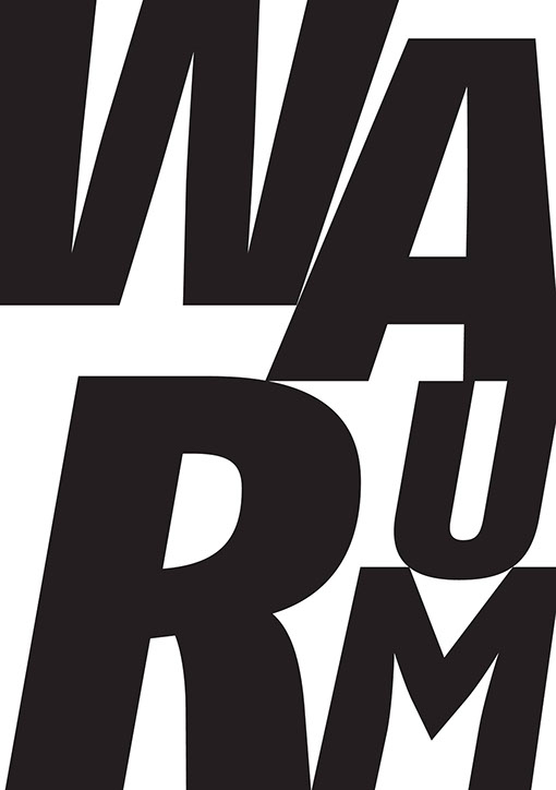 Typografische Plakate zu den drei Wörtern "Hier", "Jetzt" und "Warum".