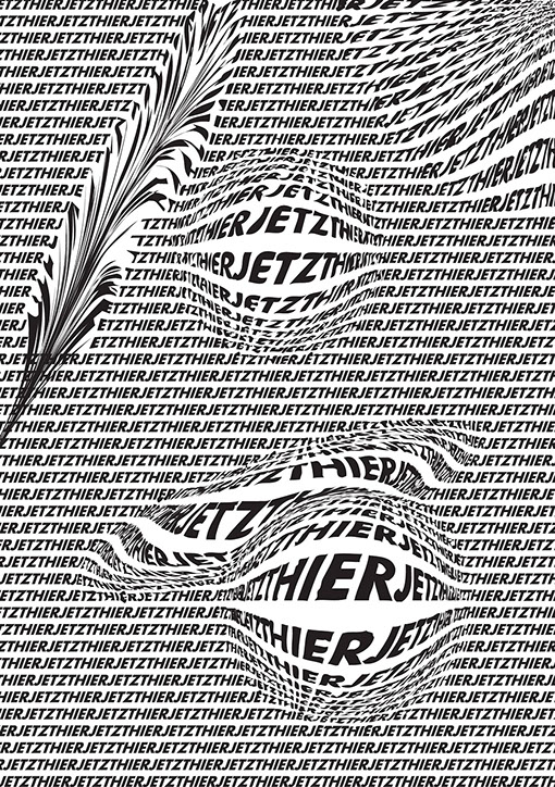 Typografische Plakate zu den drei Wörtern "Hier", "Jetzt" und "Warum".